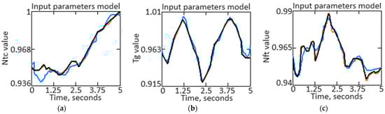 The HTE ACS main task is to ensure optimal regulation of engine operation, including fuel supply regulation depending on the gas-generator rotor r.p.m. nTC achieved at various stages of engine operation, including idle mode [,], provided that the control object (HTE) dynamics is presented in the modified nonlinear difference equation form: