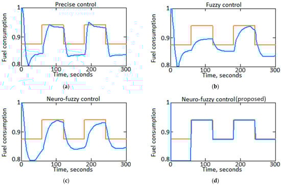 Most dynamic systems operate under uncertainty conditions, where there are complex and poorly understood relations between various technological factors, together with the presence of external influences and random interference, as well as nonlinear elements that make the conventional linear adaptive control algorithms difficult to apply [,]. In such conditions, the development of effective control strategies becomes a particularly important task. One approach to achieving this task is the hybrid use of neural networks (NNs) [,] and fuzzy logic (FL) [,]. NNs can train from existing data and identify complex nonlinear relations between the in- and output variables of a system. On the other hand, FL allows us to describe fuzzy or uncertain quantities and relations between them, which makes control models more flexible and adaptive to changing conditions. With the NN and FL hybrid application, the control object and its regulator are described by fuzzy adaptive models. These models can change their structure and parameters during system operation depending on current conditions and control requirements. This approach makes it possible to effectively manage the advanced dynamic systems without requiring precise knowledge of their internal structure or the nature of the influencing external factors [,]. The use of hybrid control systems with NNs and FL can lead to significant improvements in the performance and reliability of controlled objects under conditions of environmental uncertainty and variability. Such systems can be successfully used in various fields, including aviation [,], industry [,], transport [,], medicine [,], and many others [,,,].