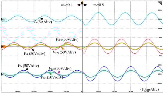 Furthermore, experiments comparing single FCC-CSC and parallel FCC-CSC configurations under different modulation indices were conducted. The results are depicted in Figure 15, illustrating that the parallel FCC-CSC system exhibits enhanced AC output harmonic performance across the entire range of modulation indices.