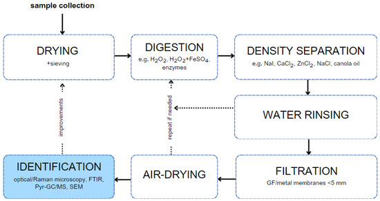 MPs identification is based on visual observation and the determination of the type of polymer [95]. In general, these methods can be divided into physical and chemical techniques.