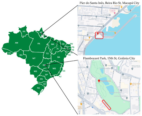 Figure 1 shows the e-MH installation locations as well as city locations in Brazil. In Amapá City, an e-MH will be installed with a CP composed of two charging stations. In Region 2, on the other hand, the e-MH will be installed at a public location, with a single charging station.