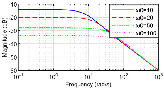 Figure 5 shows the frequency responses of the disturbance estimation for the ESO. It is shown that the load torque estimation performance improves as ω0 increases at low frequencies. Therefore, the ESO is effective for slow time-varying disturbances.