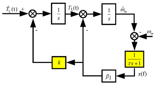 where represent the observed variables; represents the observed load torque; and ω0 is the cut-off frequency. The parameter selection method is also used to choose β1 and β2 [12,13].