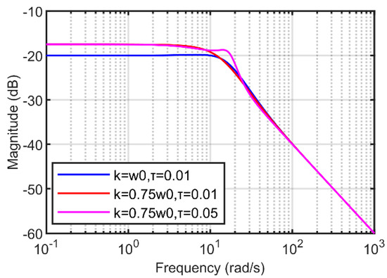 As discussed above, the speed observation performance will influence the dynamic response of the control system. In this part, the performance of the proposed A-DESO will be analyzed compared to the conventional ESO. The transfer function from to for the conventional ESO can be obtained as Equation (24).