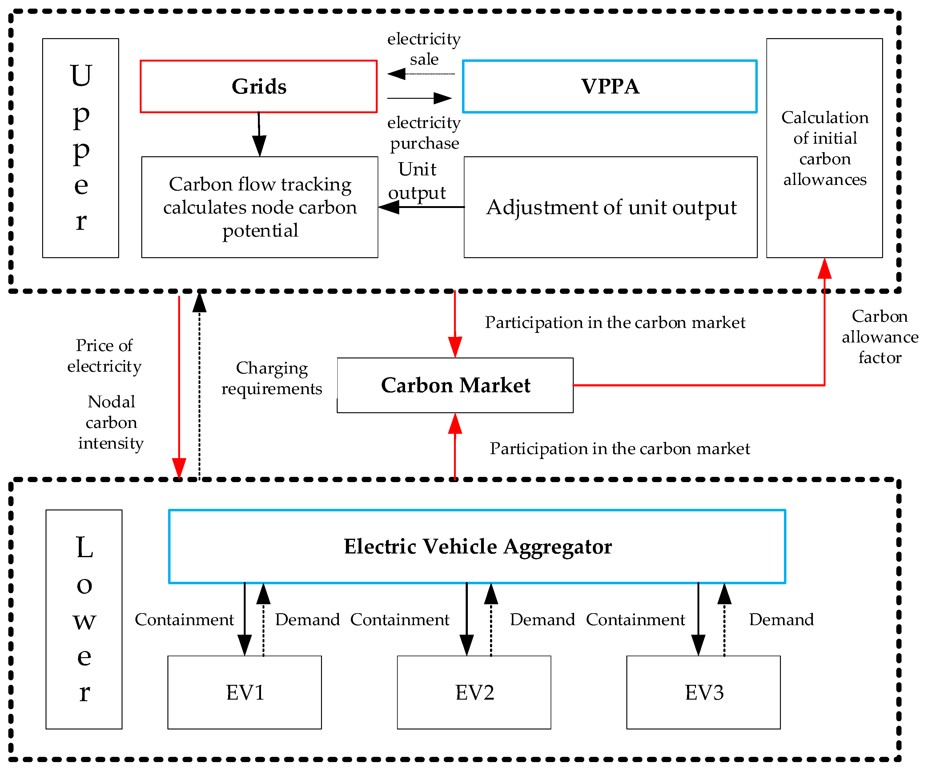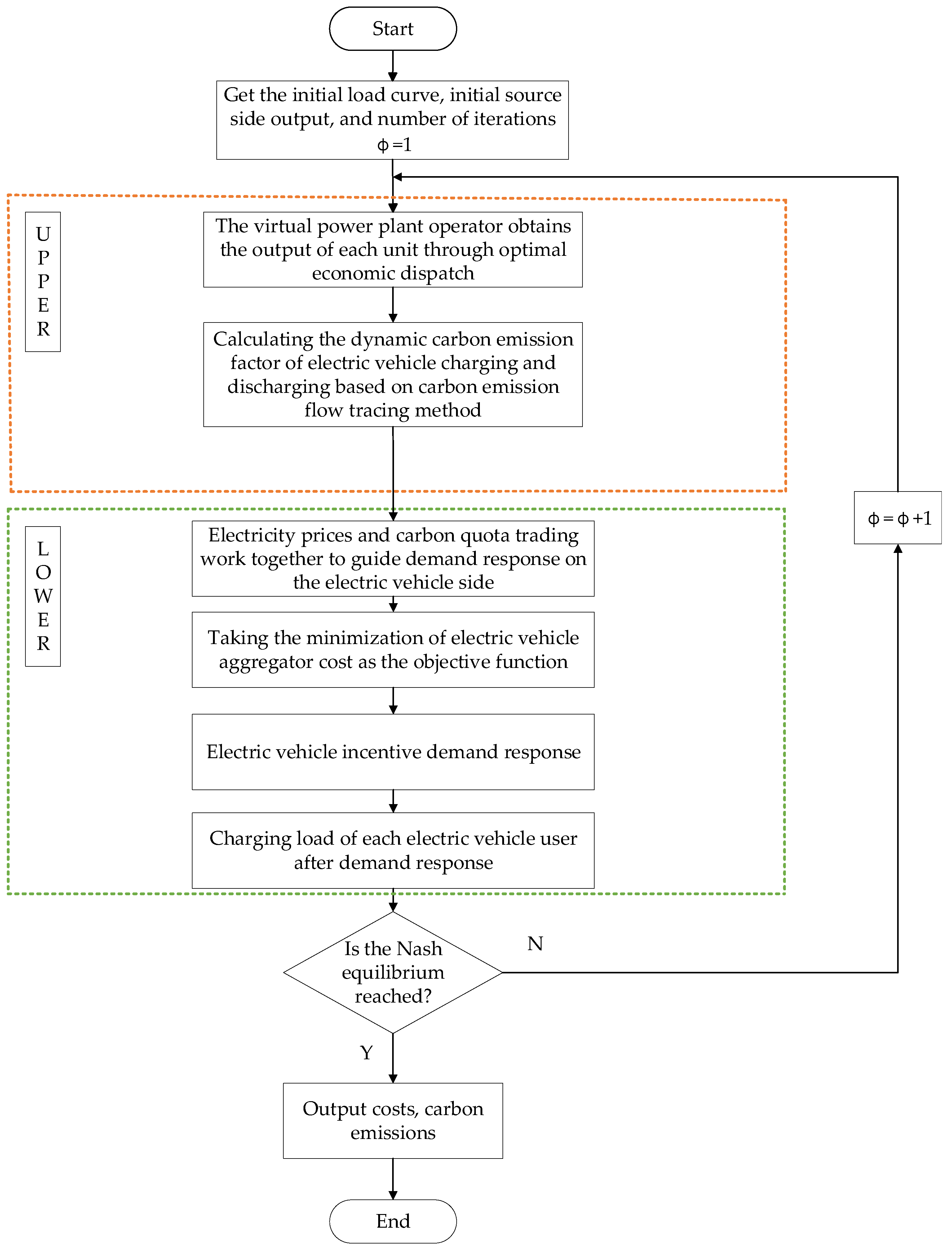 - Zhang, P.; Xie, L.; Ma, R.; Lu, P.; Song, X.; Yang, J.; Bian, Y. Multi-Player Two-Stage Low Carbon Optimal Operation Strategy Considering Electric Vehicle Cluster Schedulability. Power Syst. Technol. 2022, 46, 4809–4825. [Google Scholar] [CrossRef]
