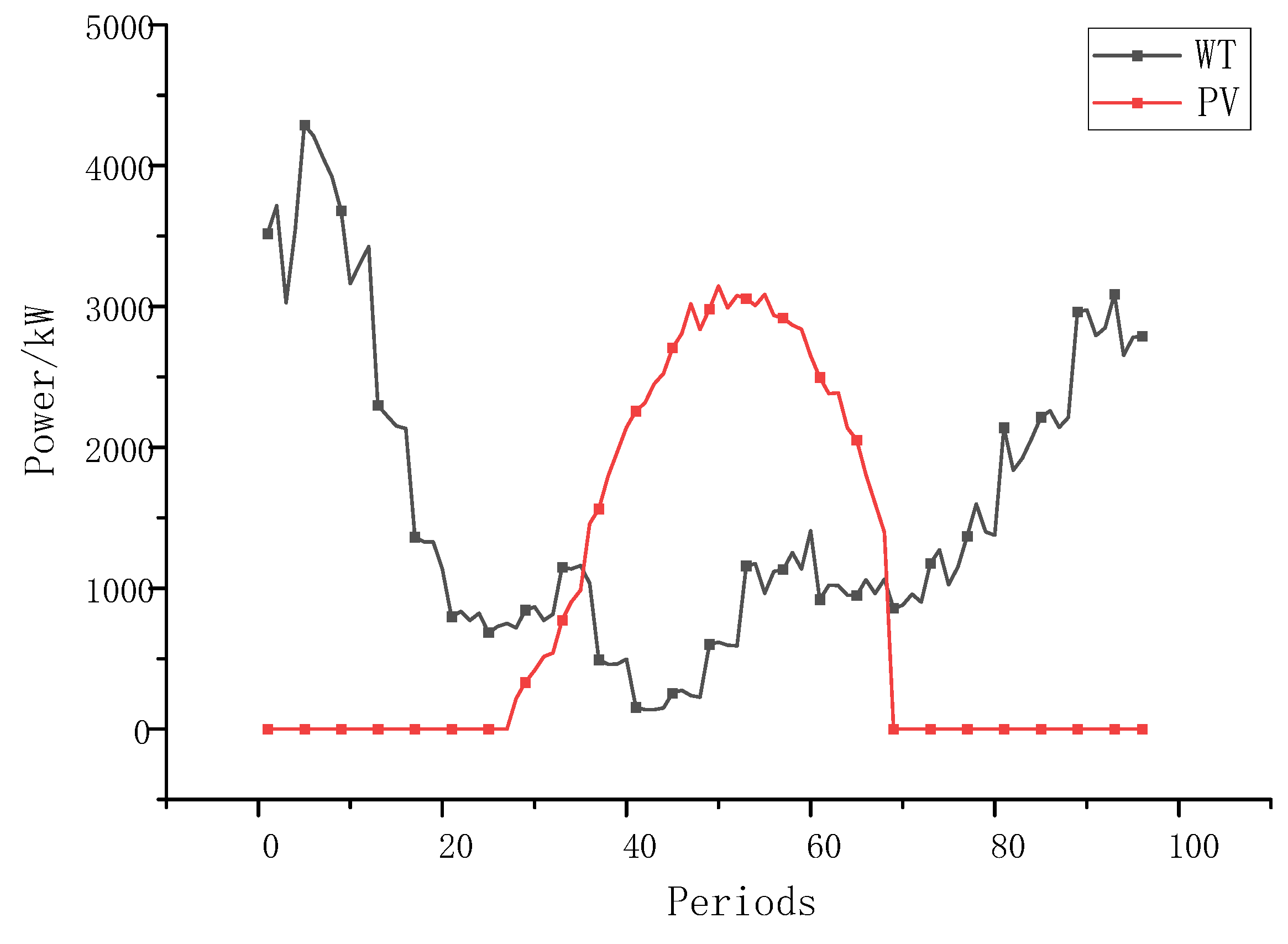 - Li, L.; Han, S.; Qiao, Y.; Li, L.; Liu, Y.; Yan, J.; Liu, H. A Wind-Solar-Electric Vehicles Coordination Scheduling Method for High Proportion New Energy Grid-Connected Scenarios. J. Shanghai Jiao Tong Univ. 2022, 56, 554–563. [Google Scholar] [CrossRef]