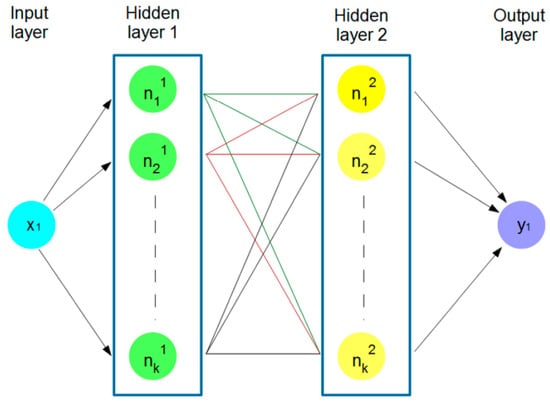 Among a vast variety of possible architectures of neural networks, the authors decided to use a DNN (deep neural network) in a quite simple architecture, which was FFN (feedforward neural network). This kind of neural network allows for the regression, classification and processing of signals, such as time series, while requiring low hardware requirements. This is achieved because of several simplifications of the network design: the data flow is unidirectional, there are no loops or feedback, and the data do not return to previous layers. At the same time, such networks (FNNs) can have a multilayer structure, allowing for deeper representation, good generalisation and error reduction, flexibility in modelling, good error reduction and relatively high optimisation capabilities.