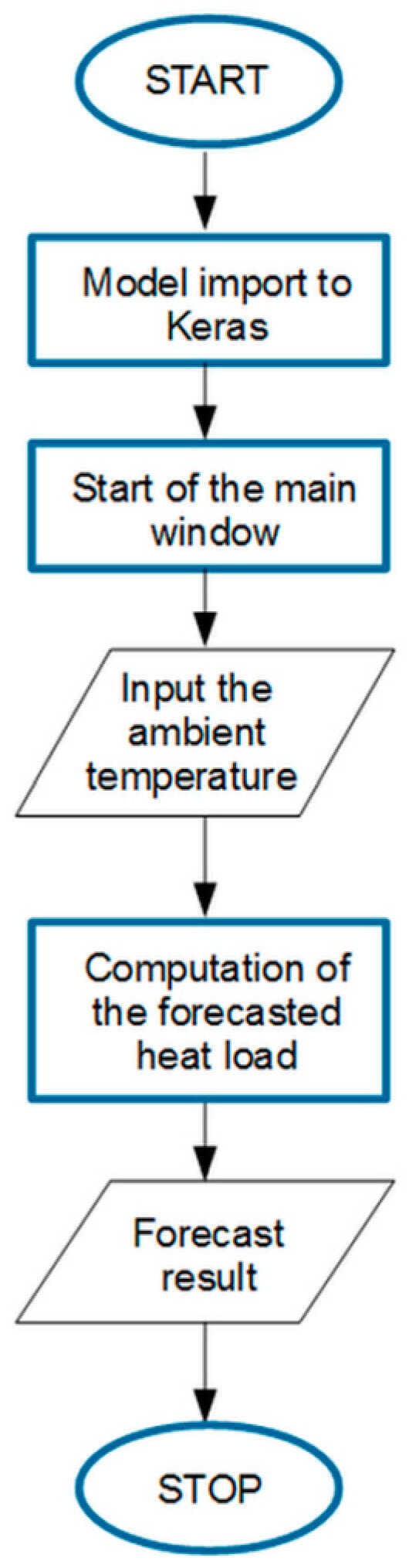 This paper is structured as follows. In the design section, the process of analysing the obtained data and adapting them to the computational needs of the neural network model is presented and discussed. Then, the process of building the neural network model based on the available libraries, which are briefly presented, is described. Once the prepared model is trained and all validation calculations are performed, an interface is prepared for the heating plant staff. Then, the conclusions are given.