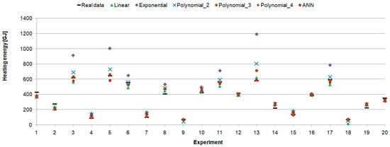 A different approach was presented by Bujalski et al. [33]. The authors compared results from ANN predictions with those from an exponential regression model with an input ambient air temperature and obtained forecast accuracy of 6.86% and 12.92%, respectively. As more accurate planning of heat or electricity generation is of significant economic importance [34], there is a need to analyse the potential benefits resulting from the use of ANN-based tools in relation to the usually used heat load demand curves.