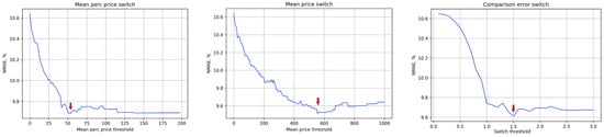 The solution proposed in this article uses the idea of threshold autoregressive models, but applies it to ML models. For three different threshold functions that distinguish between anomalous and stable periods, two independent predictive models based on a machine learning approach were proposed and combined into one hybrid model. During periods when the market is relatively stable, one model performs well, while during periods of anomalies, the other model is better. A key role in the performance of a procedure built this way is played by the model selection switch. A general sketch of our idea is shown in Figure 1.