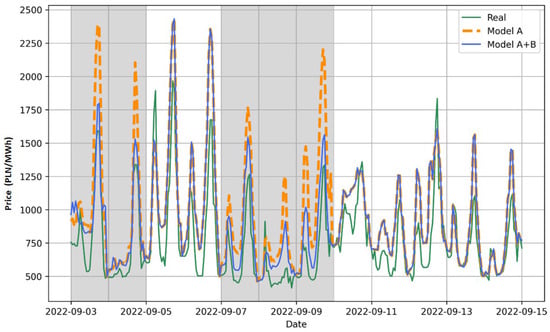For both econometric and ML models, the challenge is to account for outlier observations, which occur unpredictably and tend to take on values that deviate significantly from typical price levels. However, they appear frequently enough in the time series of electricity prices that they cannot be neglected in the analysis and prediction. The problem of including periods of anomalies (sudden changes in the value of the price, spikes, jumps) has been known to researchers for a long time, and there have been numerous attempts to take them into account in price forecasting [20]. The fundamental motivation for undertaking this research was the observation that models that give good forecasts most of the time perform significantly worse during periods of anomaly. These errors are difficult to remove by systematically improving the model itself when these periods occur unpredictably and are relatively infrequent and short. Nonetheless, it is expected that the price of energy can be predicted well during such periods as well.
