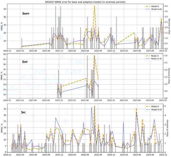 Searching for candidates for model B (a predictive model to be used during periods of anomaly) was based on a simple intuition that in a period of turbulence, past values play only a marginal role. In a subsequent series of experiments, it became apparent that an RF model trained on data from the three days preceding the prediction gave the best results in periods that were arbitrarily designated as anomalies (Figure 6).