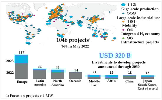 Evolution of hydrogen deployment projects around the world; source: project and investment tracker, as of 31 January 2023 [4].