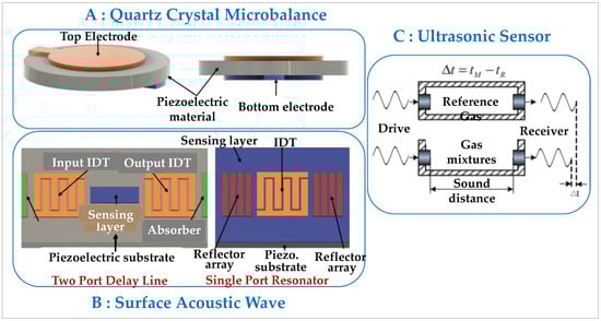 - Balasingam, J.A.; Swaminathan, S.; Nazemi, H.; Love, C.; Birjis, Y.; Emadi, A. Chemical Sensors: Gas Sensors, Acoustic Sensors. In Reference Module in Biomedical Sciences; Elsevier: Amsterdam, The Netherlands, 2021. [Google Scholar] [CrossRef]