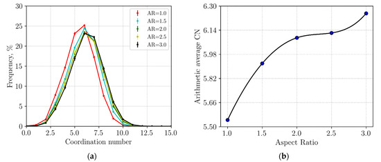 Figure 9. (a) Coordination number distribution and (b) arithmetic average of coordination numbers for cylindrical particles of various aspect ratios.