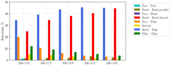 Figure 17. Distribution of contact types for cylindrical particles with various ARs.
