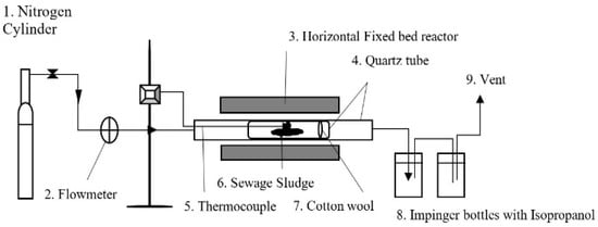 Schematic diagram of a horizontal quartz tube reactor used for pyrolysis of SS.