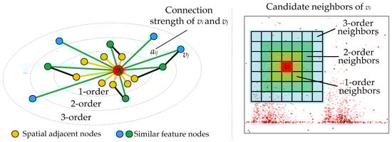 where xi is the features of the ith node and σ is the Gaussian kernel. To optimize computation, only the first, second, and third-order spatial neighbors are selected as candidate nodes.