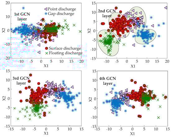 An increased number of GCN layers can result in feature over-smoothing and reduced computational efficiency. Hence, it is advisable to restrict GCN depth to four or fewer. To test the impact of varying GCN depths, a four-layer GCN model is trained, and the outputs of each layer are visualized in Figure 9.