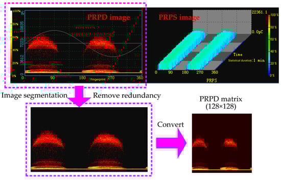 Step One: Data preprocessing, involving compressing the PRPD into a 128 × 128 two-dimensional matrix.