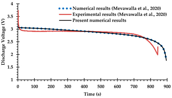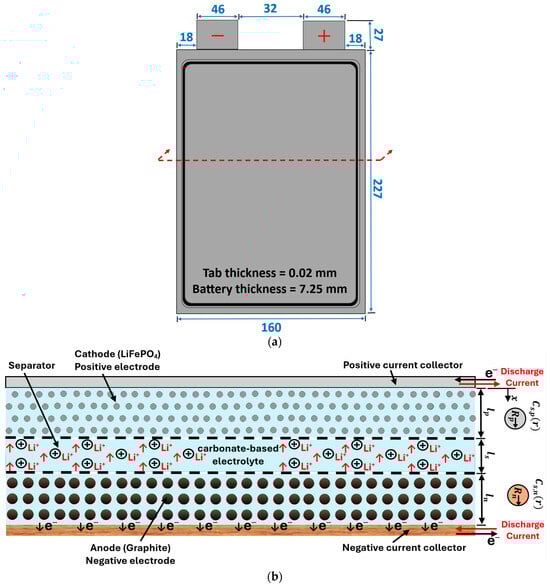 The basic components of the 20 Ah and 3.3 V prismatic pouch cell investigated in the present work are graphite for the anode, lithium iron phosphate (LiFePO4) for the cathode, and a carbonate-based electrolyte. The cell specifications are given in Table 1 [43].