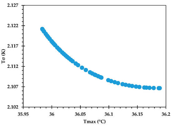 Figure 12. 3D Pareto-optimal surface to analyze trade-offs between T σ , P , and T m a x .