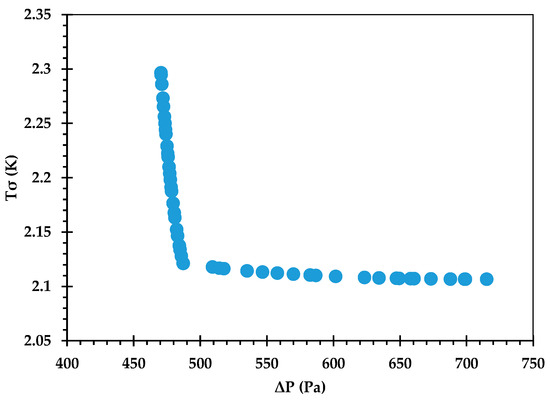 Figure 11. Pareto curve of T σ   v s .   P , obtained using the GP ML approach.