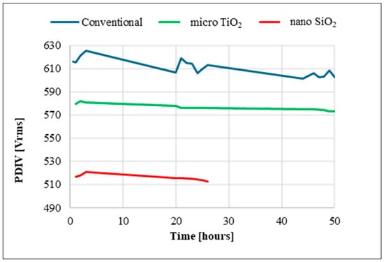 The average PDIV values vs. time for enamel with TiO2 microparticles.