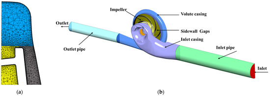 (a) Example mesh; (b) Computational model of the pump.