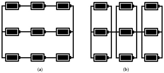 Connections in a battery pack: (a) series-parallel (S-P), and (b) parallel-series (P-S).