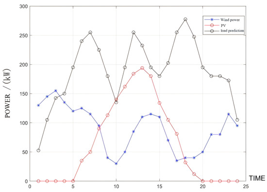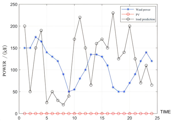 The output of each main body of microgrid II is shown in Figure 8, which only considers the participation of wind power generation in microgrid operation. Figure 9 shows the curve after load optimization and adjustment.