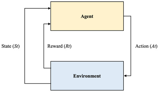 (B-3) Proposal of Operating Method. AI to propose the optimal incinerator operating methods was studied. Determining the optimal operating methods based on the incinerator operating status is very difficult, and experimentally verifying it involves many risks. Therefore, this study aimed to find the optimal operational variables by having the operating status simulation AI simulate the observational and target variables according to changes in operational variables. This exploration of the optimal incinerator operating methods was implemented using Reinforcement Learning (RL) ML. RL is a learning method where an agent interacts with the environment and learns actions that maximize rewards, with the agent learning the optimal policy through trial and error. The concept diagram of the RL algorithm is shown in Figure 5.