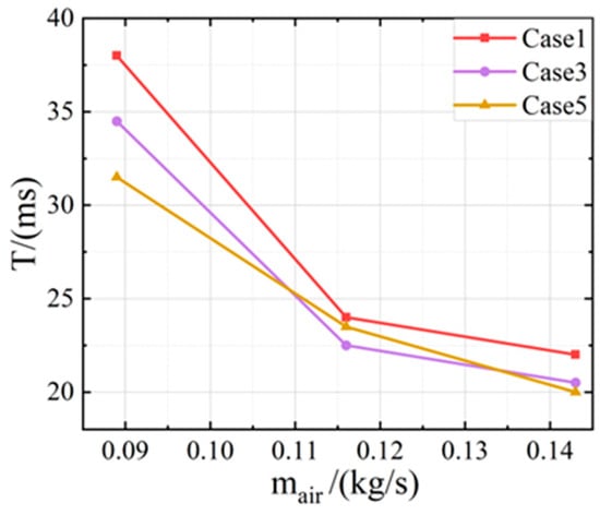 (3) When the fuel/air ratio remains constant, the light-round time decreases with the increase in incoming air mass flow rate.