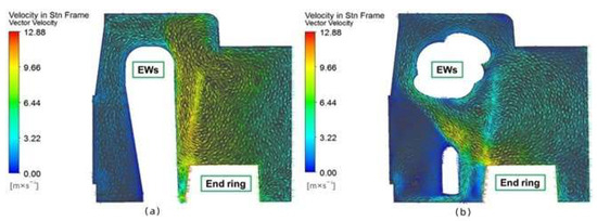(a) Model with secondary flow and simplified EWs (end windings); (b) model with secondary flow and new EWs [61].