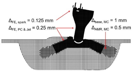 - Thelen, B.; Toulson, E. A Computational Study of the Effects of Spark Location on the Performance of a Turbulent Jet Ignition System; SAE Technical Paper 2016-01-0608; SAE International: Warrendale, PA, USA, 2016. [Google Scholar] [CrossRef]