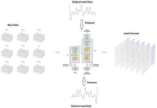 Despite their success, attention-based models have typically been unidirectional, which limits their ability to fully exploit the extensive information present in time-series data [15,16,17]. To address this constraint, recent studies have explored hybrid methods that combine various forecasting techniques to improve accuracy and reliability. For instance, combining CNNs with LSTM networks has shown promising results in capturing both the spatial and temporal characteristics of load data, leading to more accurate predictions [16]. Additionally, some methods have investigated transformers enhanced with temporal-aware self-attention mechanisms, further refining the ability to predict complex time-series data. While research on unidirectional fine-tuning has highlighted its practicality in scenarios where computational efficiency is prioritized while still delivering satisfactory accuracy in load-forecasting tasks [17,18], these methods allow for faster processing and reduced resource consumption, which is particularly valuable in real-time applications. However, they may not capture all dependencies in complex time-series data as effectively as bidirectional approaches.