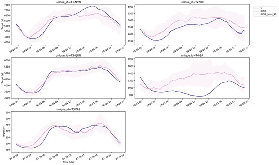 The forecasted values for the last 48 time steps in each series, obtained using the bidirectional fine-tuning approach, are presented in Figure 2. The results indicate that the forecasted values are remarkably close to the actual values across all series with the exception of South Australia (SA). Notably, the actual values of the series consistently fall within the forecasted 90% confidence interval, underscoring the accuracy of the proposed method. These findings demonstrate that the bidirectional fine-tuning approach is effective in accurately forecasting both medium and long-term horizons.