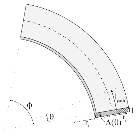 where ri and ro are, respectively, the inner and outer diameters of the hollow cylinder; l is the length of the hollow cylinder; ϕ is the angle of the center of the component; and λ is the thermal conductivity of the material.