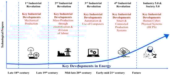 In general, the context of energy sector technologies’ evolution in the cascade of Industrial Revolutions is reflected in Figure 5.