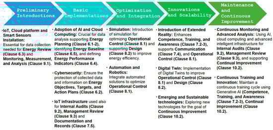 For the values of Society 5.0 (the transition from traditional resource-based growth models to a balance between economic prosperity, environmental health, and social inclusion) [], the development of Energy 5.0 technologies means a new round of development of energy management—“…a set of interrelated or interacting elements for establishing energy policy and energy goals, as well as processes and procedures to achieve these goals”, according to the ISO 50001 standard [], as well as the emergence of a new energy policy (Figure 6) [].
