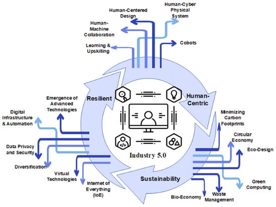 In the process of transition from Industry 4.0 to 5.0, human behavior and thinking focus on the technologies necessary to address complex global problems, implying the concentration of human experience on solving promising (future) problems in an increasingly automated world [].