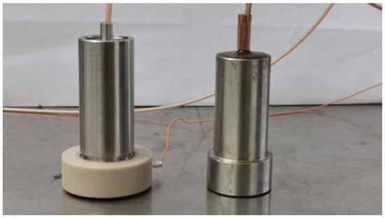 The various salts contained in the rock were ionized in water to produce positive and negative ions. Under the action of the electric field, the positive and negative ions will move and form a stable current [44]. The higher the water salinity, the stronger the conductivity, and the lower the measured resistance [45]. Therefore, the position of the gas–water interface during the water invasion process can be determined by monitoring the change in the resistance value in the model. According to rock electricity theory, the relationship between resistivity and water saturation can be expressed by Archie’s formula [46,47]: