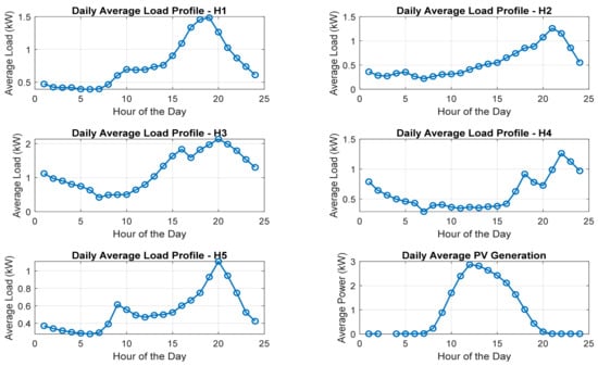 Figure 3. Daily average load profiles and PV generation.
