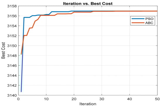 Figure 5. Best cost function against iteration for PSO and ABC.