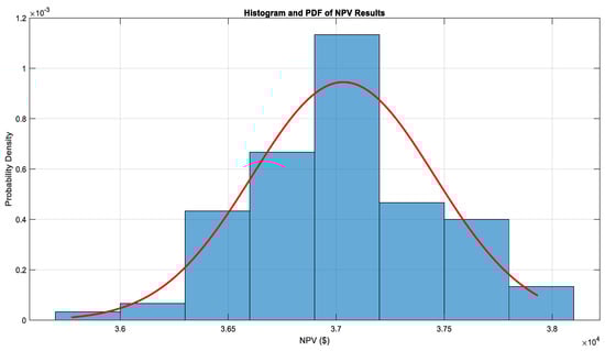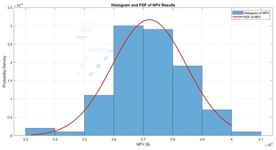 Figure 10. Histogram and PDF of NPV results for load variations.