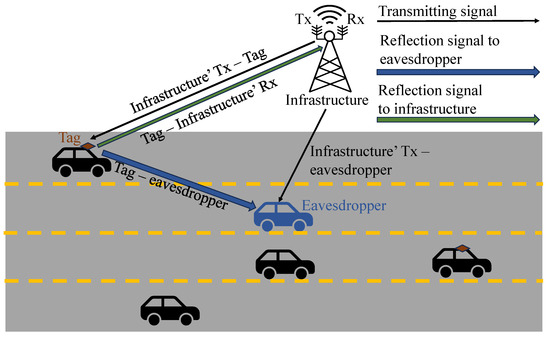 - Zhao, R.; Mishra, D.; Seneviratne, A. Securing V2I Backscattering from Eavesdropper. In Proceedings of the ICC 2024-IEEE International Conference on Communications, Denver, CO, USA, 9–13 June 2024; pp. 1–6. [Google Scholar] [CrossRef]