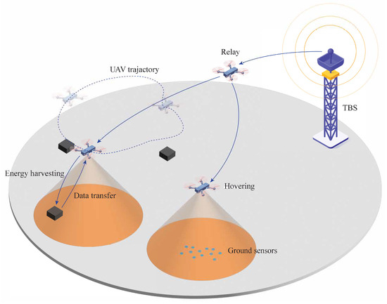 Conventional industrial wireless networks consist of TBSs and devices. Hence, techniques for effectively connecting while ensuring the coverage of TBSs, devices, and users are essential and challenging in current IIoT applications. Also, IoT devices become ineffective when deployed in places without TBSs’ coverage [72]. To address this issue, leveraging and placing UAVs flexibly becomes a promising, cost-effective approach to expanding the network coverage in a high-dimensional space and wider area [73]. Owing to their strong mobility and ability to improve wireless channels, UAVs can provide sufficient service coverage with no gross distortion such as severe path loss [74], pertaining to applications adopting high-level techniques such as non-orthogonal multiple access (NOMA) and MEC [75]. Moreover, exploiting UAVs enabled with edge servers and smartly optimizing their trajectory can implement edge computing in the existing industrial wireless networks and increase the size of the service area [62].