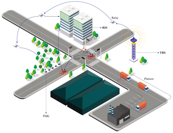 Similar to the energy-efficient feature of backscatter technology, reconfigurable intelligent surfaces (RIS) have gained considerable interest due to their exceptional capability to improve communication coverage by manipulating the phase shift of individual reflecting elements instead of depending on power amplifiers [47]. In particular, RIS offers additional advantages, such as ease of implementation, improved spectral efficiency, eco-friendliness, and compatibility [48]. Because RIS devices are generally passive, consisting of electromagnetic materials. they can be seamlessly integrated into various structures, such as building facades, highway poles, vehicle windows, and even clothing [49]. More importantly, RIS, with its ability to modify the wireless propagation environment, efficiently mitigates power attenuation over extended distances and effectively resolves signal obstruction problems.