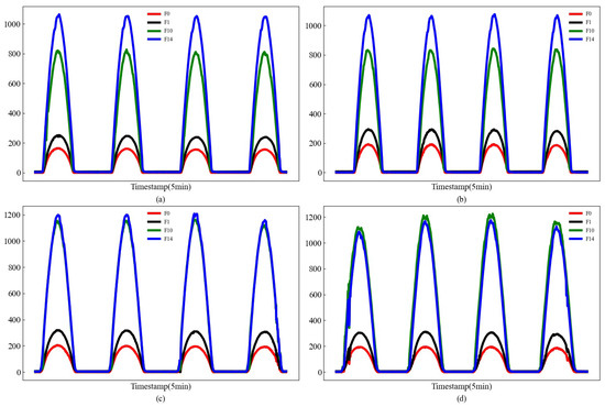 Sequence of characteristics of different seasons after seasonal division (a) spring, (b) summer, (c) autumn, (d) winter.