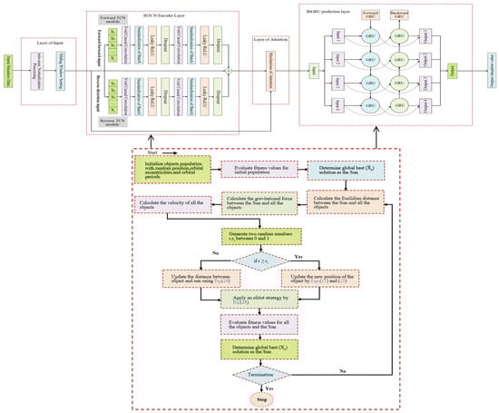 To sum up, we can construct the integrated attention mechanism and the BiGRU-BiTCN algorithm optimized by the KOA optimization algorithm as shown in Figure 6: